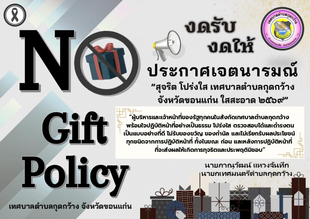 ประกาศเจตนารมณ์ นโยบาย No Gift Policy จากการปฏิบัติหน้าที่